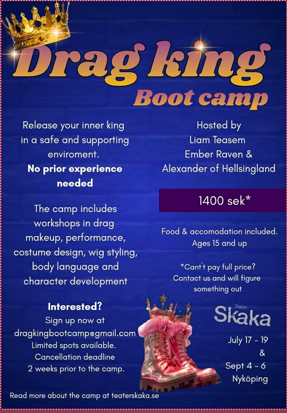 Datum ute nu för sommaren och höstens drag king bootcamps. Passa på att boka redan nu! 17-19 juli eller 4-6 september.